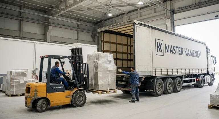 - Наша опытная команда. Доставку и разгрузку осуществляют только наши штатные специалисты. Это не наемные рабочие, а мастера, которые годами работают с натуральным камнем и знают все его особенности: вес, центр тяжести, хрупкие места. Вам не нужно будет искать грузчиков или беспокоиться о разгрузке и установке.