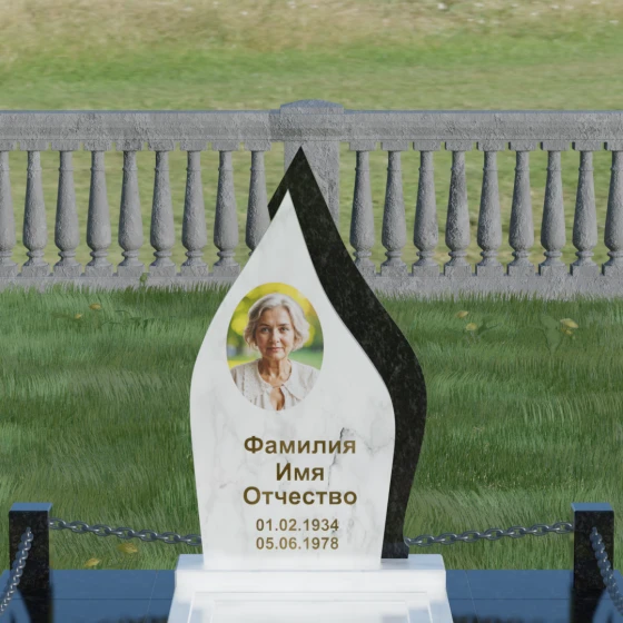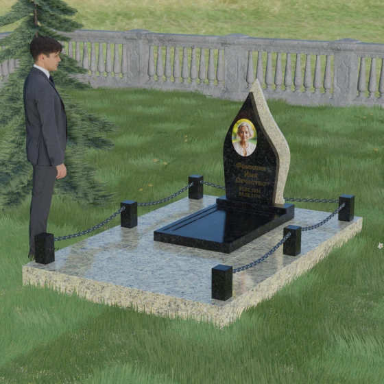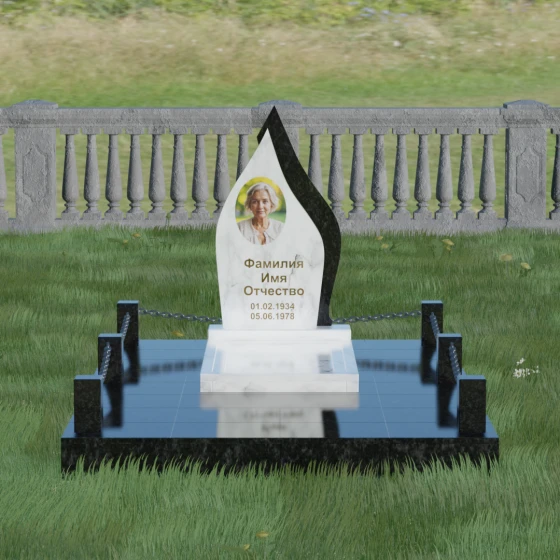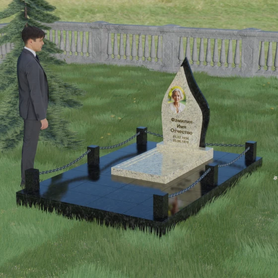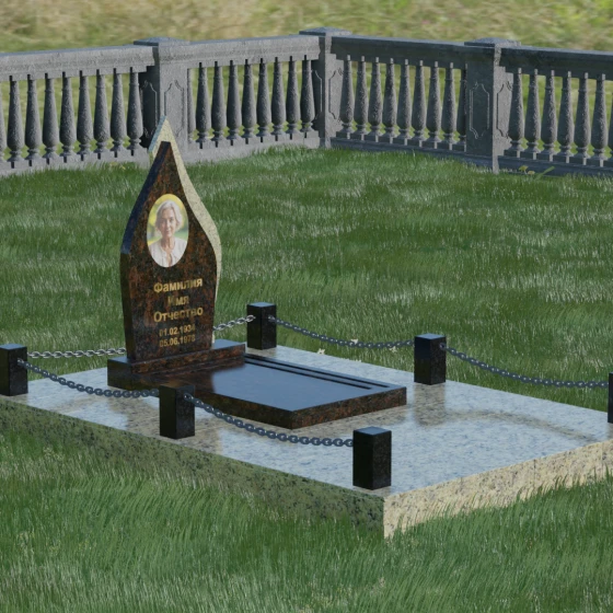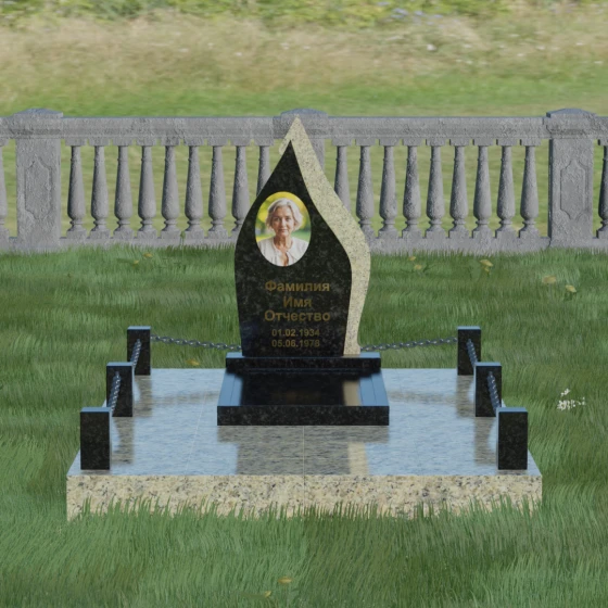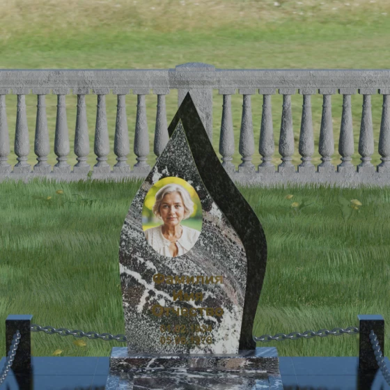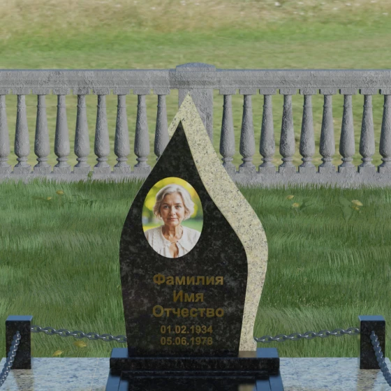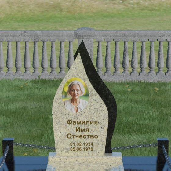 Кому подойдет: Данная мемориальная композиция является универсальной и в то же время очень личной. Благодаря мягким, текучим линиям и форме «пламени», она часто выбирается для оформления захоронений любимых матерей, жен или дочерей, олицетворяя женственность и душевное тепло. Однако при выборе более строгих сочетаний гранита (например, черного Габбро и красного Лезниковского) монумент станет достойным символом памяти для отца, мужа или брата, подчеркивая их внутреннюю силу и непоколебимость. Это идеальный выбор для тех, кто ищет эстетически совершенное решение, объединяющее художественную резьбу и современное благоустройство участка.
