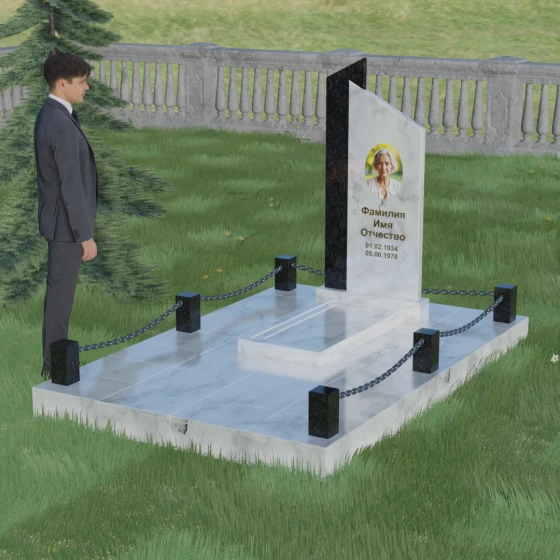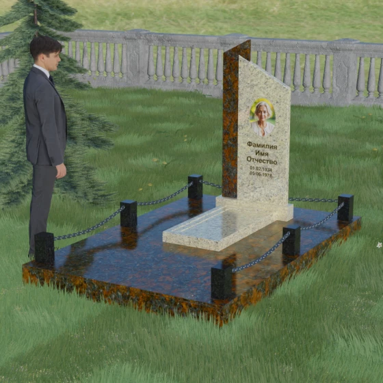 Кому подойдет: Эта модель — идеальный выбор для тех, кто ищет баланс между современным европейским стилем и монументальной классикой. Она подойдет для почтения памяти как мужчины, так и женщины, благодаря своей универсальной геометрии и возможности варьировать цвета. Высокая надежность конструкции и полное мощение участка делают этот вариант предпочтительным для людей, которые ценят порядок, долговечность и хотят создать достойный символ вечной любви и уважения.