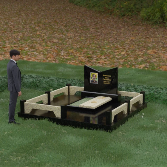 Создание мемориала — это не просто работа с камнем, это искусство запечатлеть историю жизни в самом долговечном материале на земле. Представленное надгробие из натурального камня (Артикул 176) представляет собой сложную архитектурную композицию, где монументальность черного гранита встречается с изяществом светлых акцентов. Как мастер-камнерез, я вижу в этой модели идеальный баланс между строгой мужской энергетикой и ювелирной точностью обработки каждой детали, что делает этот комплекс выдающимся образцом современного ритуального зодчества.