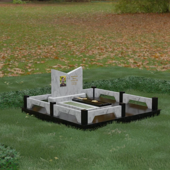 • Продуманная эргономика: комбинированная надгробная плита минимизирует площадь открытого грунта, защищая участок от сорняков и скопления пыли.