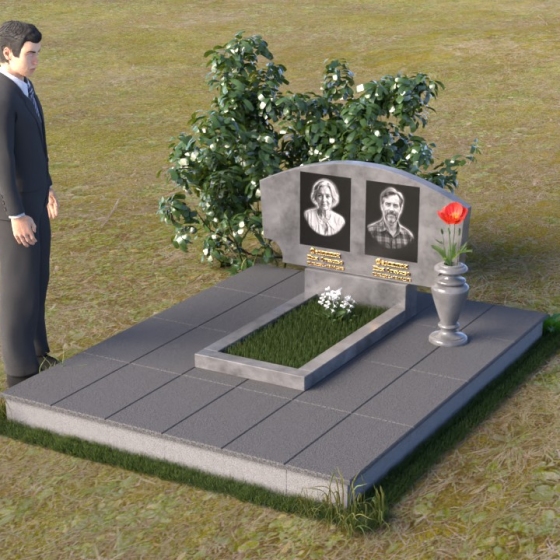 Эта мемориальная композиция, артикул ПГ023, воплощает собой сдержанную элегантность и глубокое уважение к ушедшим. Ее плавные, скруглённые линии словно рассказывают историю жизни, полной взлетов и падений, радостей и печалей, и теперь нашедшей свой покой. Верхняя часть стелы имеет мягкий, дугообразный изгиб, напоминающий о небесном своде, под которым души обретают вечный приют. Зеркальная полировка камня отражает свет, создавая ощущение легкости и воздушности, а контраст с матовой поверхностью гравировки портретов придает изображению глубину и выразительность. Простота формы не отвлекает от главного – светлых образов тех, кто дорог нашему сердцу.