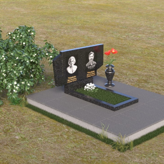 Стела памятника ПГ033 представляет собой гармоничное сочетание строгих линий и плавных переходов, символизирующих жизненный путь, с его взлетами и падениями, и обретение вечного покоя. Верхняя часть стелы слегка расширена, создавая ощущение устремленности ввысь, к небесам. На левой стороне вырезано изображение лаконичного православного креста, служащего символом веры и надежды на воскресение. Зеркальная полировка черного гранита создает эффект глубины и отражения, словно в вечности. На контрасте с глянцевой поверхностью выделяются выгравированные портреты и надписи, выполненные с высокой точностью и детализацией.