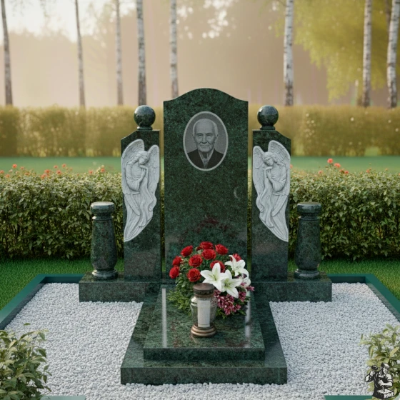 Этот мемориал вызывает чувство светлой печали и глубокого уважения к памяти ушедшего. Ангелы, словно оберегают его сон, а строгие формы и лаконичность дизайна подчеркивают достоинство и благородство. Закрытая надгробная плита облегчает уход за местом захоронения, предотвращая рост сорняков и сохраняя опрятный вид. Гладкая поверхность камня препятствует скоплению пыли и грязи.
