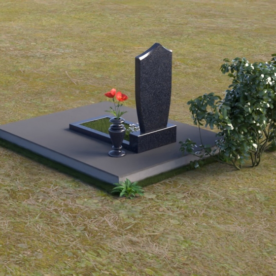 Этот ритуальное изделие сочетает в себе строгость линий и элегантность формы, создавая атмосферу умиротворения и светлой памяти. Стела, выполненная в форме щита с мягко скругленным верхом, символизирует защиту и покровительство. Зеркальная полировка черного камня создает эффект глубины и торжественности, отражая окружающий мир и напоминая о вечности бытия. Четкие, выверенные пропорции и сдержанный дизайн делают этот памятник достойным обрамлением для воспоминаний о близком человеке.