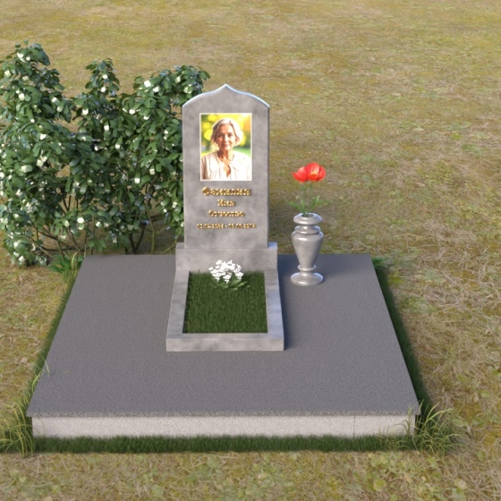 Форма этого гранитного монумента идеально подходит для размещения портрета усопшего. Благодаря своей вытянутой форме, он позволяет создать гармоничную композицию, где портрет будет занимать центральное место и привлекать к себе внимание. Золотое начертание имени и дат жизни на фоне темного полированного гранита выглядит особенно торжественно и выразительно. Вы можете выбрать любой из восьми доступных вариантов камня, чтобы подчеркнуть индивидуальность образа и создать памятник, который будет полностью соответствовать вашим представлениям о красоте и гармонии. Гранит амфиболит с его неповторимыми разводами, Балтик грин с его мягким зеленым оттенком, Блю Перл с его искрящимися вкраплениями, Габбро-диабаз с его глубоким черным цветом, Дымовский с его теплым коричневым оттенком, Лезниковский с его насыщенным красным цветом, Мансуровский с его светлым и благородным видом, или же классический мрамор Тассос – каждый из этих камней обладает своим уникальным характером и способен передать всю глубину ваших чувств. Подберите камень, который лучше всего отражает характер человека, которому посвящен этот гранитный монумент.