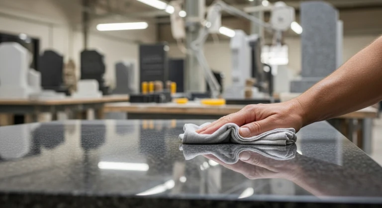 Ответ: Полировка - это не просто придание блеска. Это многоступенчатый процесс обработки камня, который закрывает его естественные поры, делая поверхность гладкой, как зеркало, и практически неуязвимой для влаги и грязи. От качества полировки зависит, как долго памятник будет сохранять свой первозданный вид.